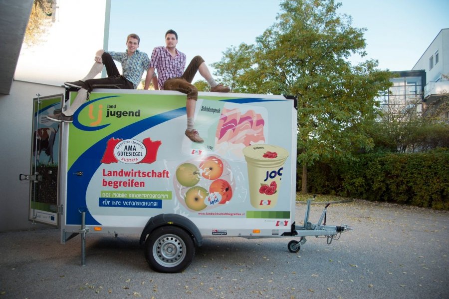 Das mobile Unterhaltungsprogramm, mit sechs pädagogisch aufbereiteten Stationen, ist für Kinder von vier bis zehn Jahren geeignet. In einem Parcours lernen die Kleinen die Zusammenhänge zwischen bäuerlicher Produktion, Lebensmitteleinkauf, Umwelt und Landschaft spielerisch kennen.