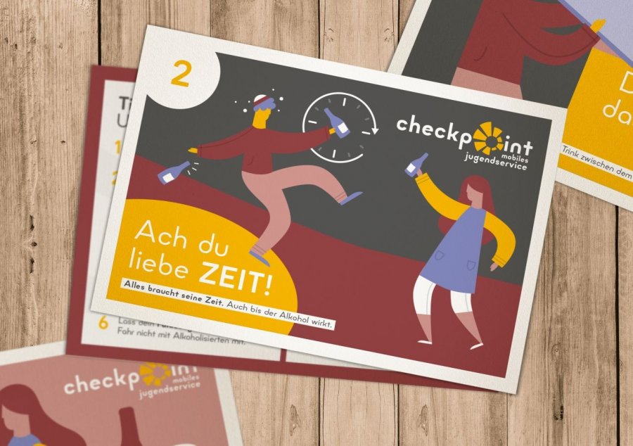 Viele Jugendliche kommen im Nachtleben mit Alkohol in Kontakt. Um sie über den sicheren Umgang mit Alkohol zu informieren, haben wir diese Freecard-Serie gestaltet.