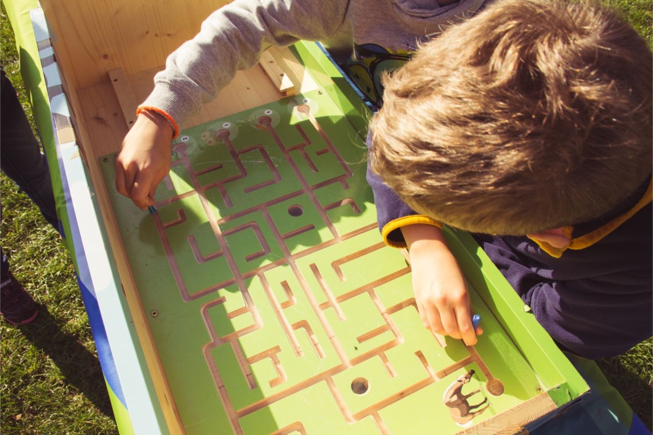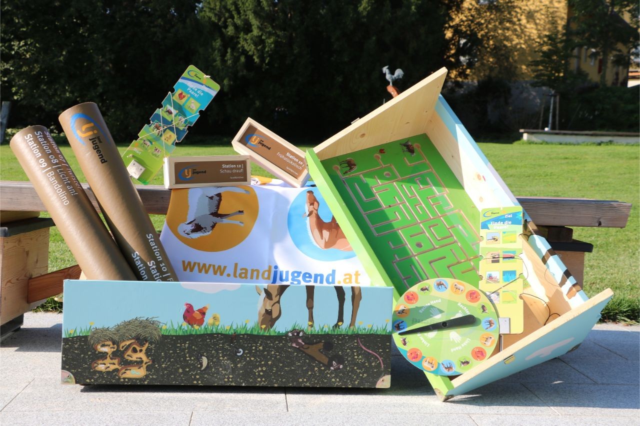 Das mobile Unterhaltungsprogramm, mit sechs pädagogisch aufbereiteten Stationen, ist für Kinder von vier bis zehn Jahren geeignet. In einem Parcours lernen die Kleinen die Zusammenhänge zwischen bäuerlicher Produktion, Lebensmitteleinkauf, Umwelt und Landschaft spielerisch kennen.