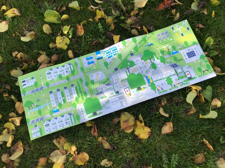 Die Landkarte vom Dorf der Zukunft lädt zum Entdecken ein. Immer wieder findet man ein neues Detail, wodurch die Neugier der Zielgruppe geweckt wird und im Idealfall anregende Diskussionen und auch viele Fragen entstehen.