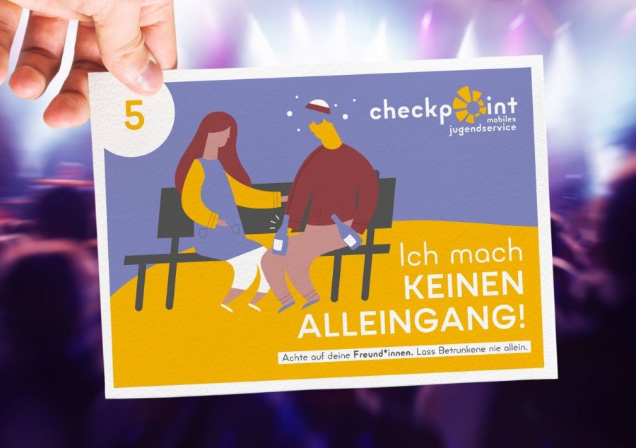Viele Jugendliche kommen im Nachtleben mit Alkohol in Kontakt. Um sie über den sicheren Umgang mit Alkohol zu informieren, haben wir diese Freecard-Serie gestaltet.